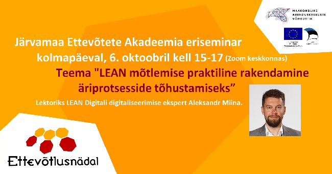 Ettevõtlusnädala raames toimus Järvamaa Ettevõtete Akadeemia eriseminar teemal ""LEAN mõtlemise praktiline rakendamine äriprotsesside tõhustamiseks". Teemat tutvustas LEAN Digitali digitaliseerimise ekspert Aleksandr Miina.