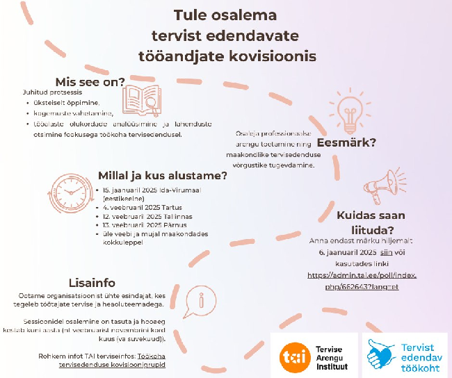 Ootame osalema töökoha tervisedenduse kovisioonigruppidesse