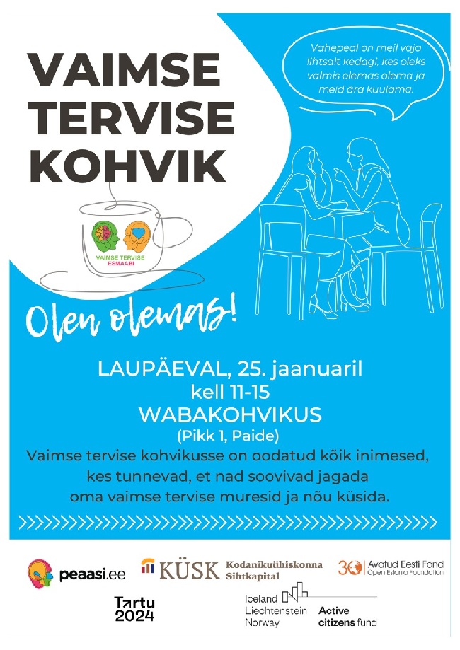 Vaimse tervise kohvik - 25. jaanuaril ajavahemikus 11.00-15.00 Paides, Wabakohvikus