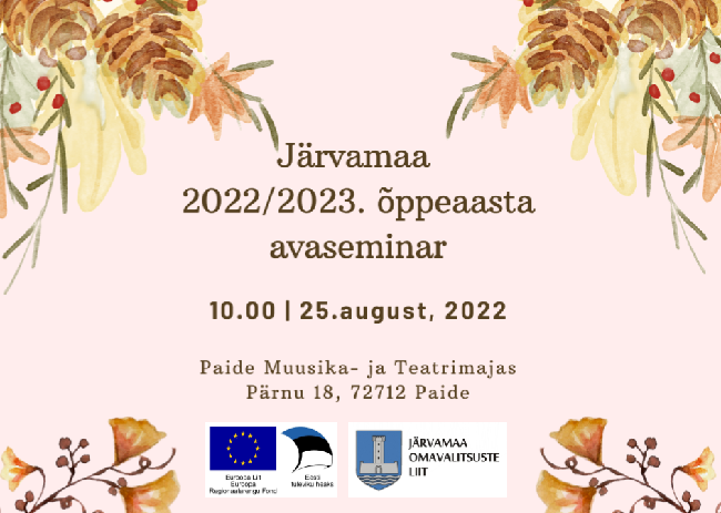 Järvamaa Omavalitsuste Liit ja sihtasutus Järvamaa kutsuvad kõiki Järvamaa haridustöötajaid ja haridusspetsialiste 25. augustil Paide Muusika- ja Teatrimajja uue õppeaasta avaseminarile.