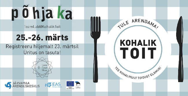 Uuringud on kinnitanud, et toidukorvi päritolu on meie inimestele üha olulisem ja toitudes eelistatakse aina enam kodumaal kasvatatud tooraineid. Korraldame 25.-26. märtsil Järvamaal Põhjaka mõisas kohaliku toidutemaatilise TeamLabi. Soovime sellega innustada kohalikke toidutootjaid leidma uusi ideid toorainete paremaks väärindamiseks.