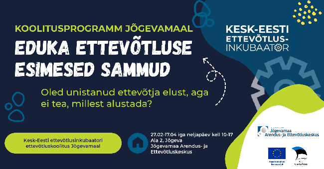 15. veebruarist algab koolitusprogramm "Eduka ettevõtluse esimesed sammud", mis annab võimaluse omandada praktilisi teadmisi ja kogemusi, mis aitavad ettevõtlusega alustada ning äriideed edukalt ellu viia. Koolitus toimub kontaktõppevormis Paides, Keskväljak 15 sihtasutus Järvamaa ruumides, laupäeviti ja pühapäeviti ajavahemikus 15. veebruar kuni 16. märts. Koolitust korraldab Kesk-Eesti ettevõtlusinkubaator.