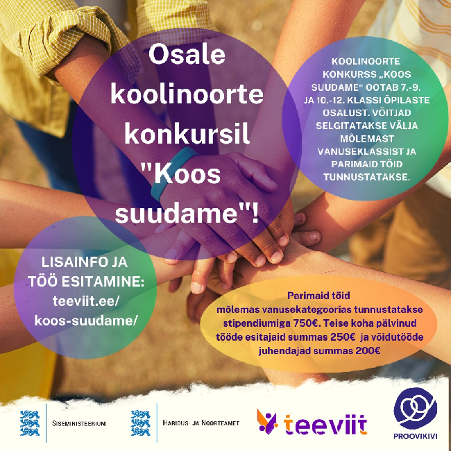 Siseministeerium koostöös Proovikivi algatusega kutsub kõiki koolinoori osalema konkursil "Koos suudame".